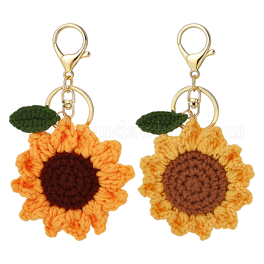 2 шт. 2 стили брелки ручной работы из плетеного волокна в виде подсолнуха, с застежкой для ключей из сплава и железа, золотые