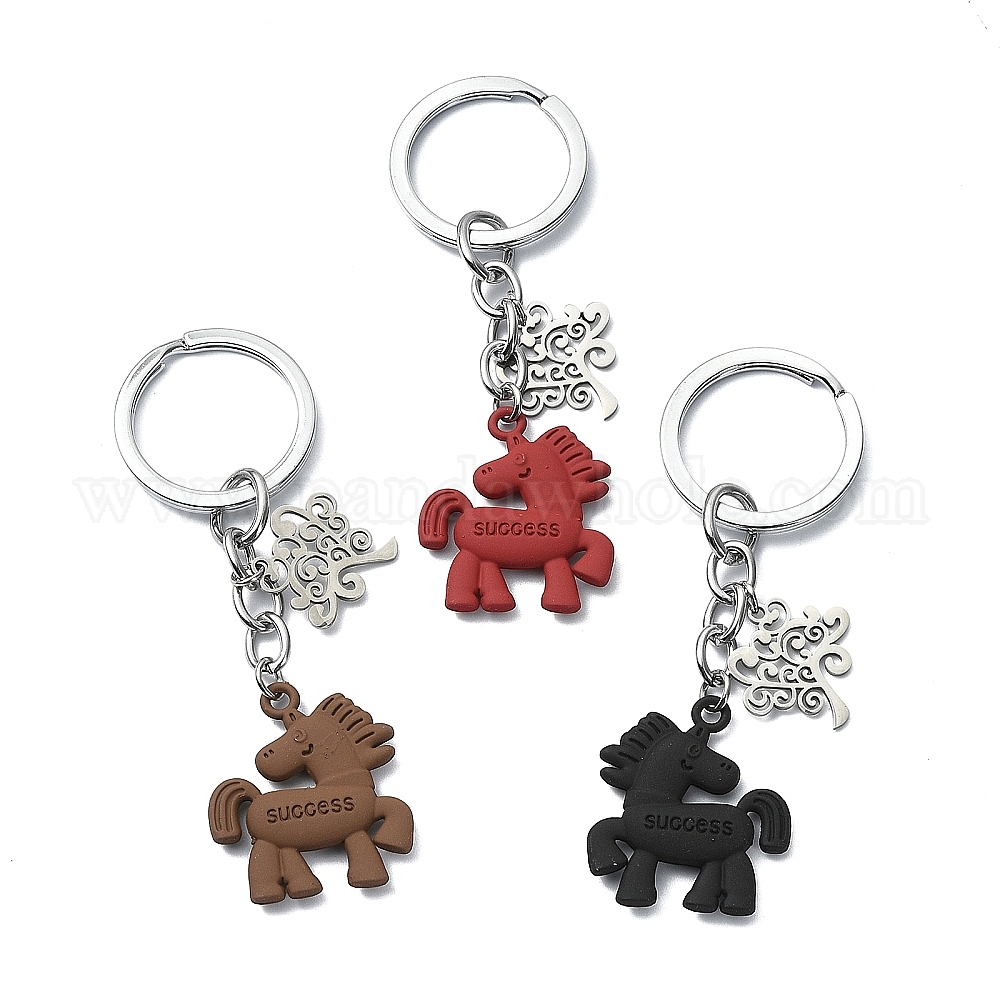 Брелоки из сплава, окрашенные аэрозольной краской, с кольцами для ключей из сплава, лошадь с деревом, платина