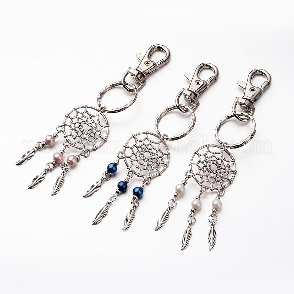 Сплетенная сеть / сеть с брелоком из перьев, сплав стекла жемчужина брелок, с поворотными застежками сплава, 125 мм (00JCRR)