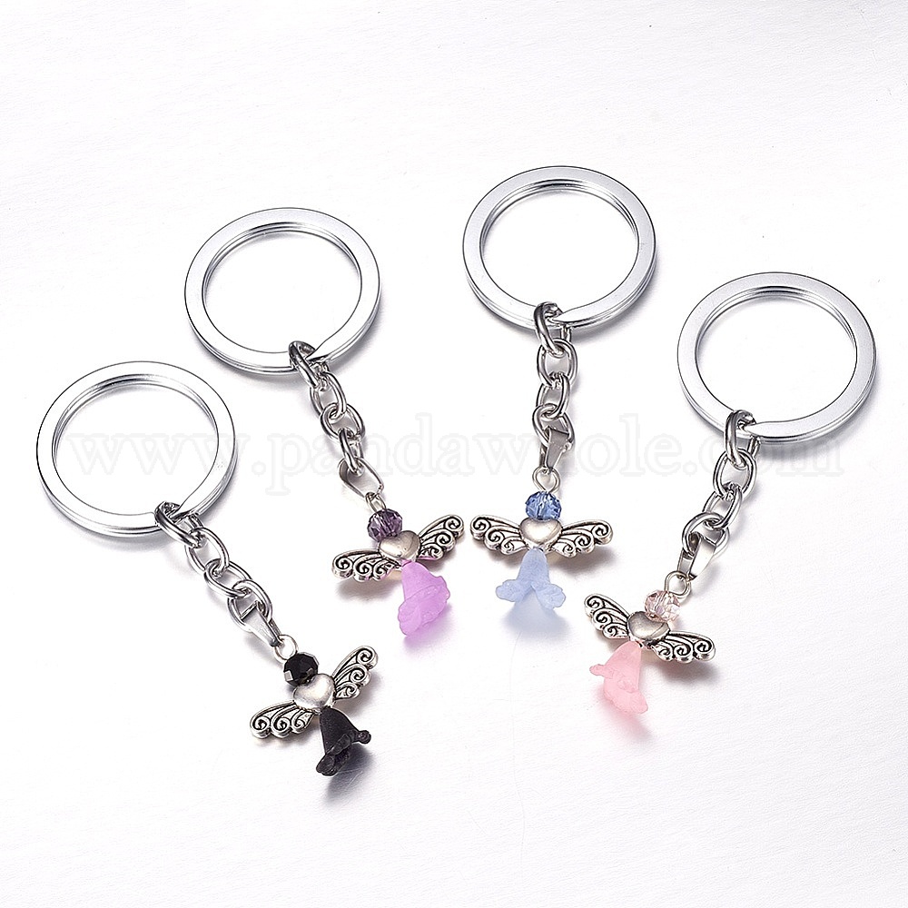 Сплав брелок, с подвеской, тибетские бусины стиль сердца и акриловые бусины цветок, прекрасное свадебное платье ангел болтаться