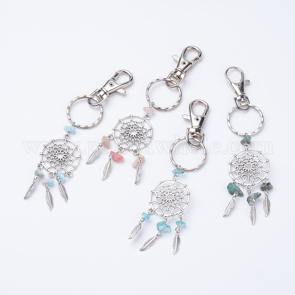 Сплетенная сеть / сеть с цепочкой для ключей из сплава пера, С натуральными бусами из драгоценных камней и железными брелками, старинное серебро и платина