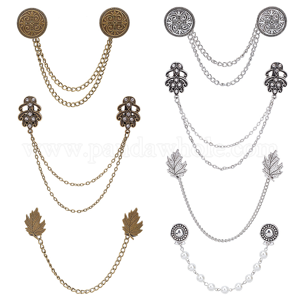 Ahademaker плоские круглые и цветочные и листовые булавки со стразами, брошь из сплава с железными подвесками на длинных цепочках для воротника рубашки костюма (02EY18)