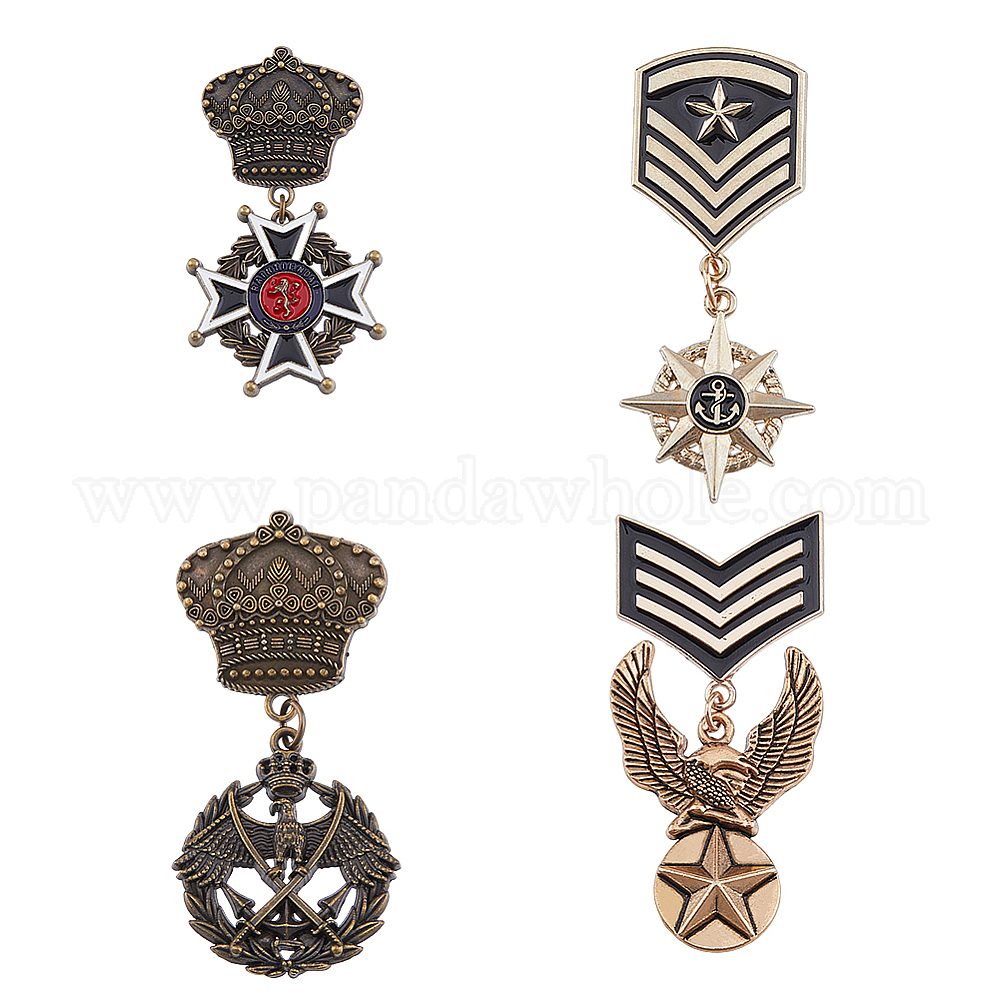 4 шт. 4 стиль орел & звезда & корона & крест подвески значки из цинкового сплава, металлическая медаль для мужчин (02F3QA)
