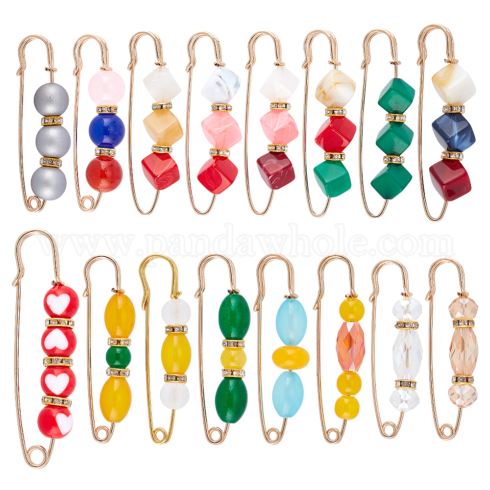 16 шт. 16 Броши в стиле смолы, имитация драгоценных камней и хрустальных страз, бусины, английская булавка, железные булавки на лацкан для одежды, зажимы для шали, свитера