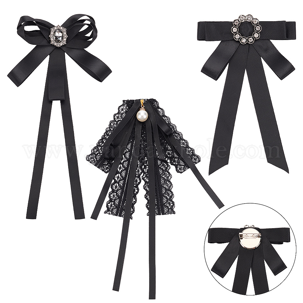 3шт 3 стили полиэстеровая лента бант брошь, булавка для галстука-бабочки со стразами и искусственным жемчугом