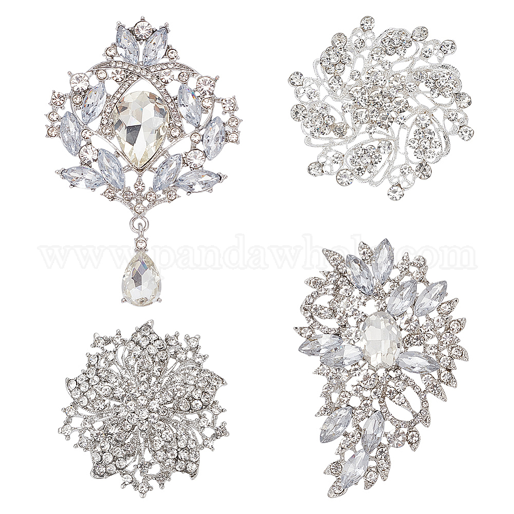 • Кристалл 4шт 4 стиль брошь-булавка в виде цветка со стразами, значки из серебряного сплава для рюкзака, кристалл, 52~95x8~19 мм, 1 шт / стиль