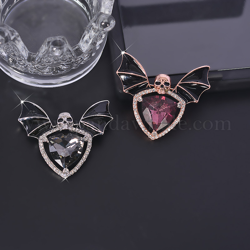 Хэллоуин тема черепа сплав эмалью булавка, брошь в форме летучей мыши со стразами