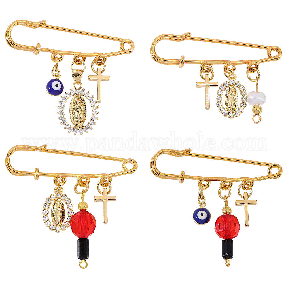 Железа килт контакты, брошь-подвеска из латуни с микропаве и кубическим цирконием, сглаз, Дева Мария и крест, религия