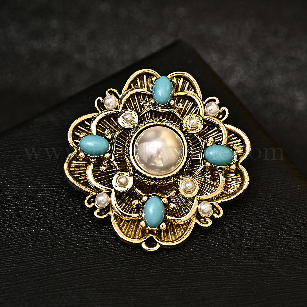 • Античное Золото Женская цветочная брошь в стиле барокко, броши сплав горный хрусталь, с пластиковой имитационной жемчужиной, античное золото , 37 мм
