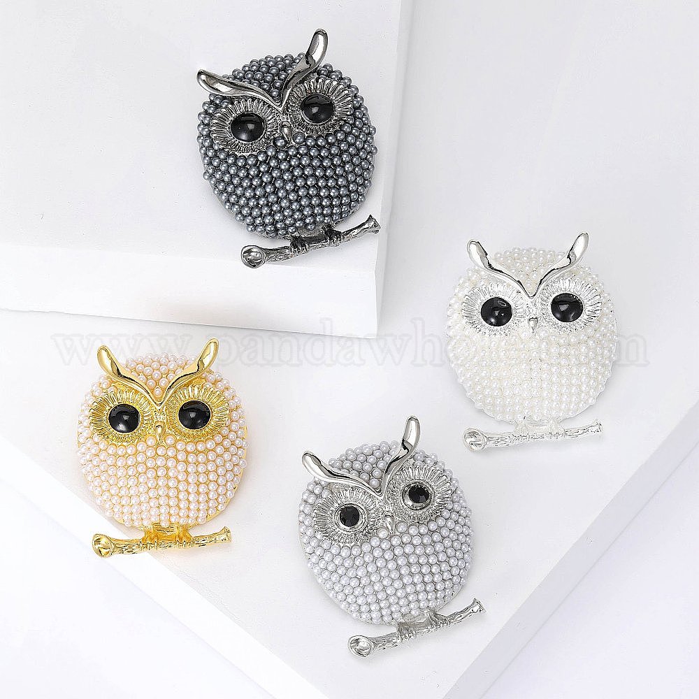 Сплава брошь, с пластиковой имитационной жемчужиной, сова