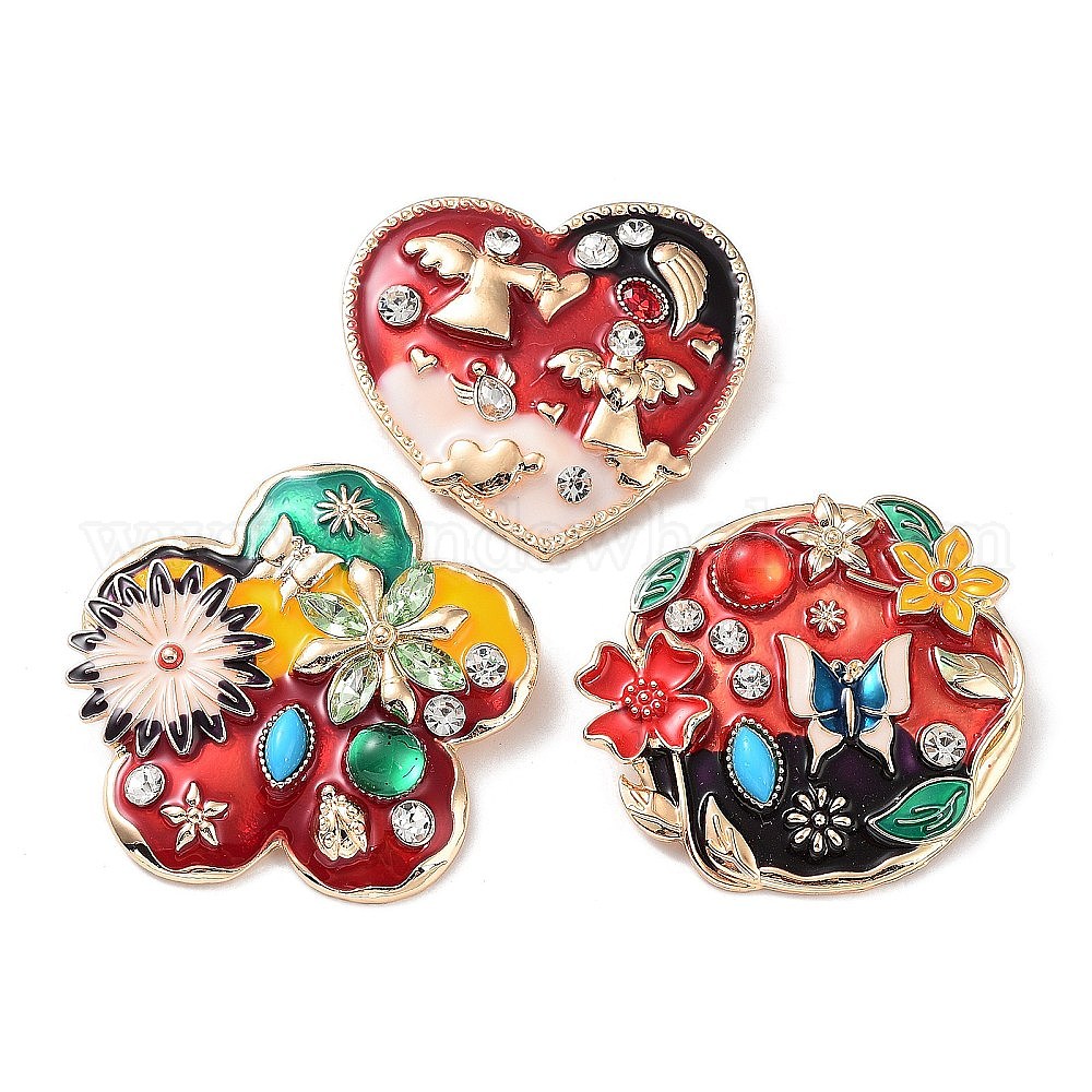 Брошь из сплава со стразами, с эмалью, цветок / сердце