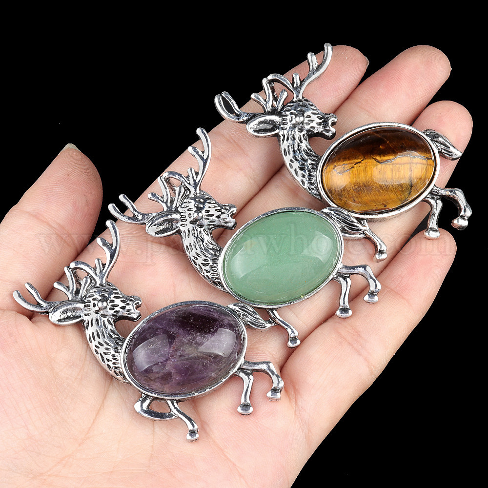 Женские броши в виде оленя из драгоценных камней и сплавов, античное серебро
