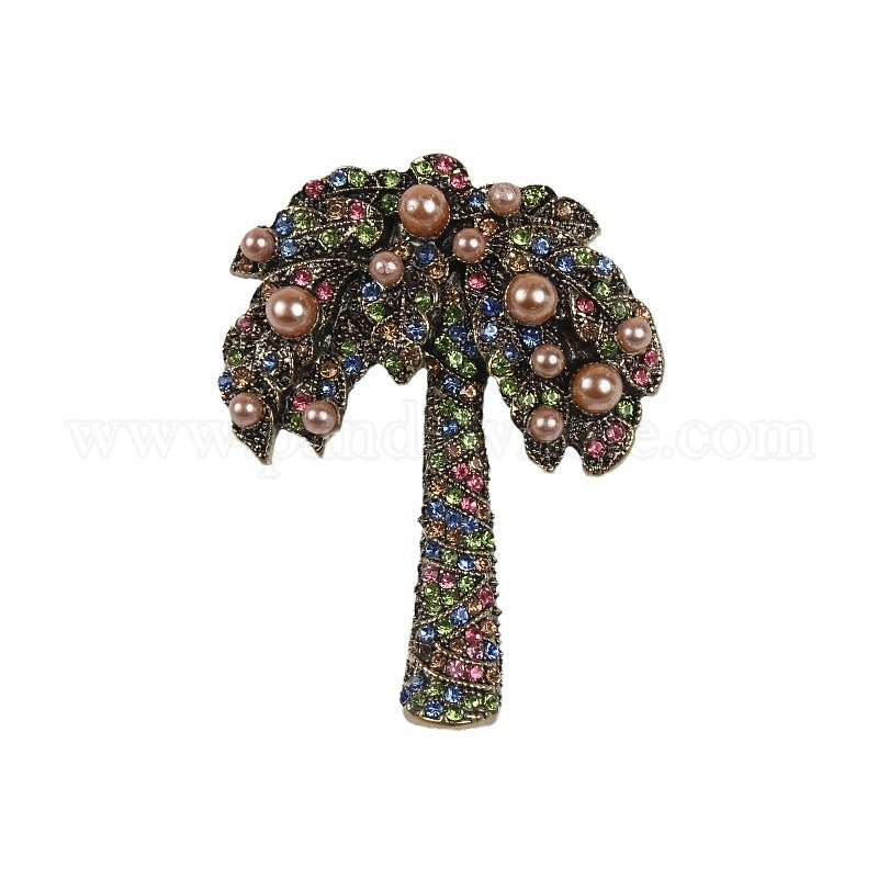 Брошь из кокосовой пальмы из сплава со стразами для женщин и мужчин, античная бронза