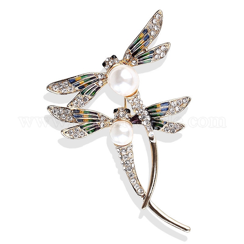 Брошь в виде двойной стрекозы из сплава со стразами, булавки с эмалью от насекомых