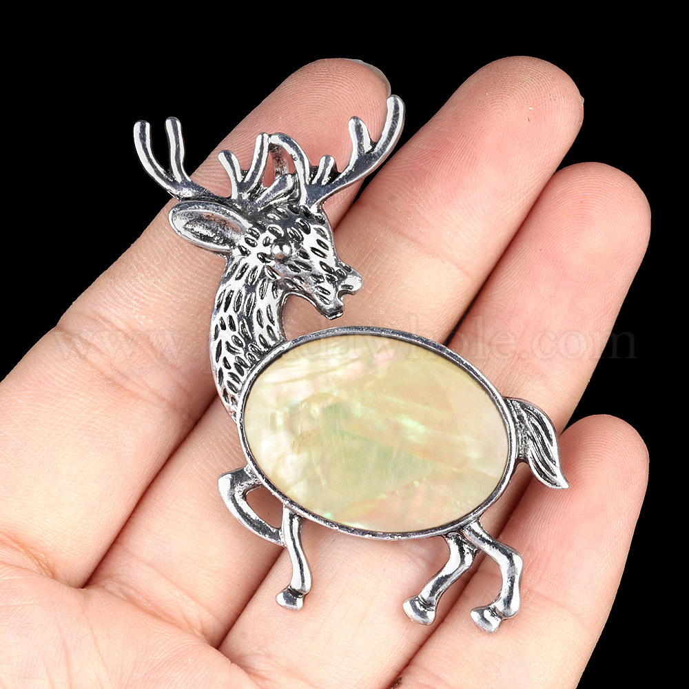 Женские броши с оленями из натуральных ракушек и сплавов, античное серебро
