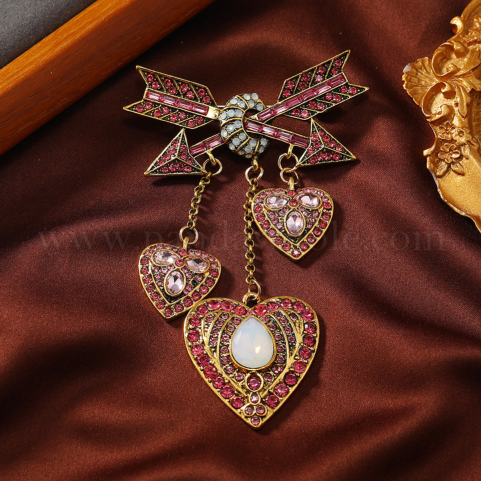 Брошь из цинкового сплава с фианитами, сердце со стрелой