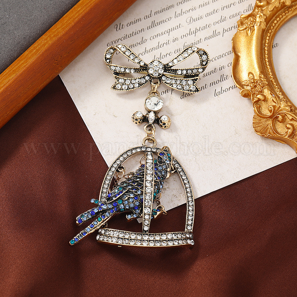 Брошь из цинкового сплава со стразами, клетка для птиц , бантом