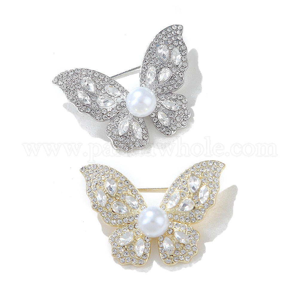 Сплава брошь, булавка для лацкана со стразами и искусственным жемчугом, бабочка