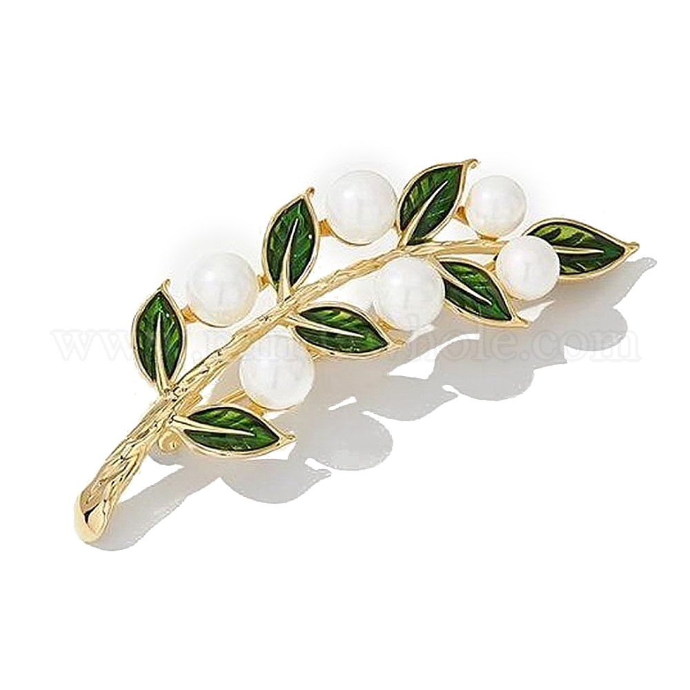 Брошь из цинкового сплава, эмалевая булавка с имитацией жемчуга, лист