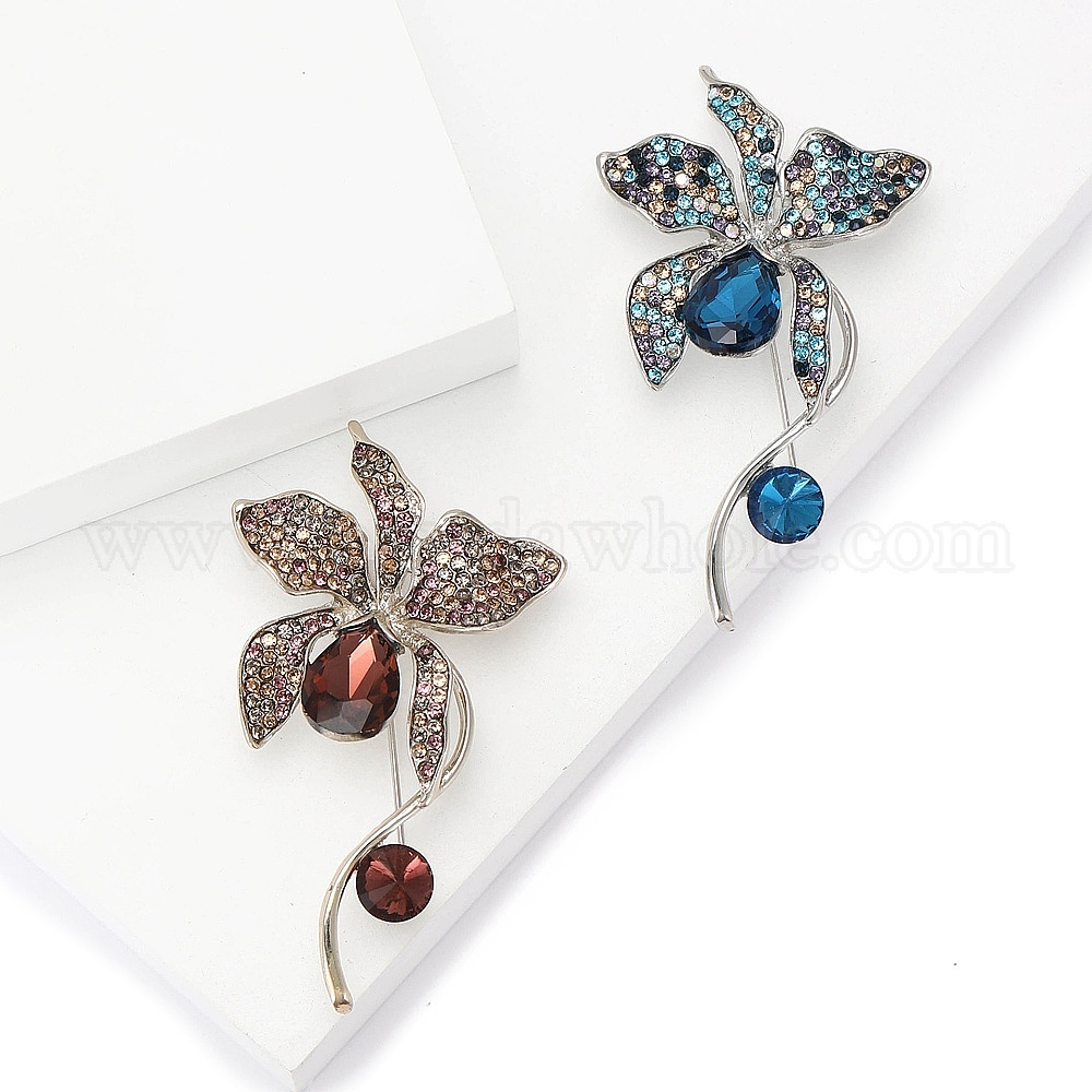 Брошь из сплава и стеклянных страз, цветок для женщин, платина