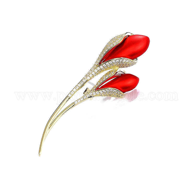 Брошь из цветочного сплава с кристаллами и стразами, изысканные красные эмалевые булавки для девочек и женщин (02W8NB)