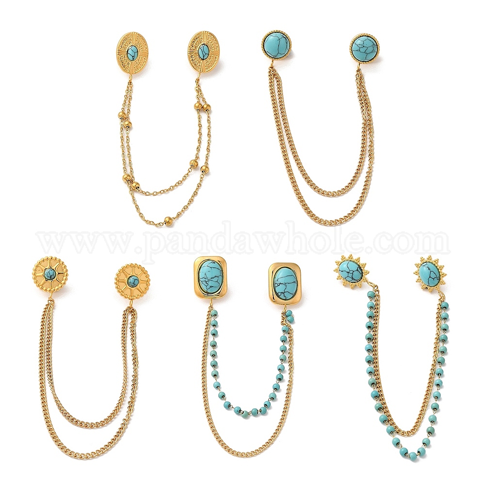 304 подвесная брошь-цепочка из нержавеющей стали, окрашенная в паве из синтетической бирюзы, золотые (02WBK2)