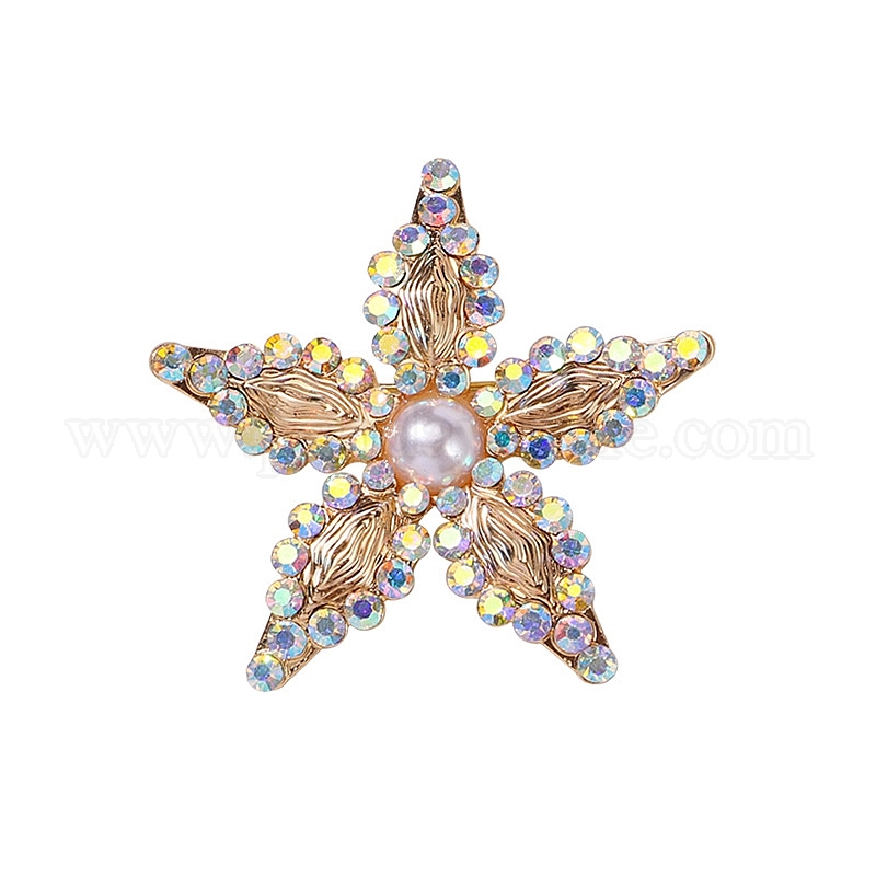 Брошь из сплава со стразами для рюкзака, с пластиковыми жемчужные бусины, звезда (02WQK5)