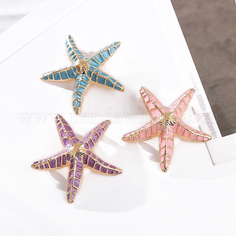 • Бледно-Розовый Эмалевая булавка в виде морской звезды, брошь из сплава для рюкзака, розовый жемчуг, 55x55 мм