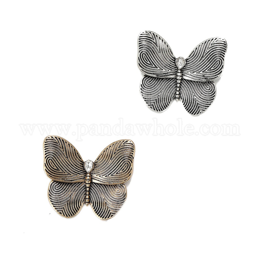 • Античное Серебро Брошь из ретро сплава со стразами, аксессуары для одежды булавка для воротника бабочка, античное серебро, 37x33 мм