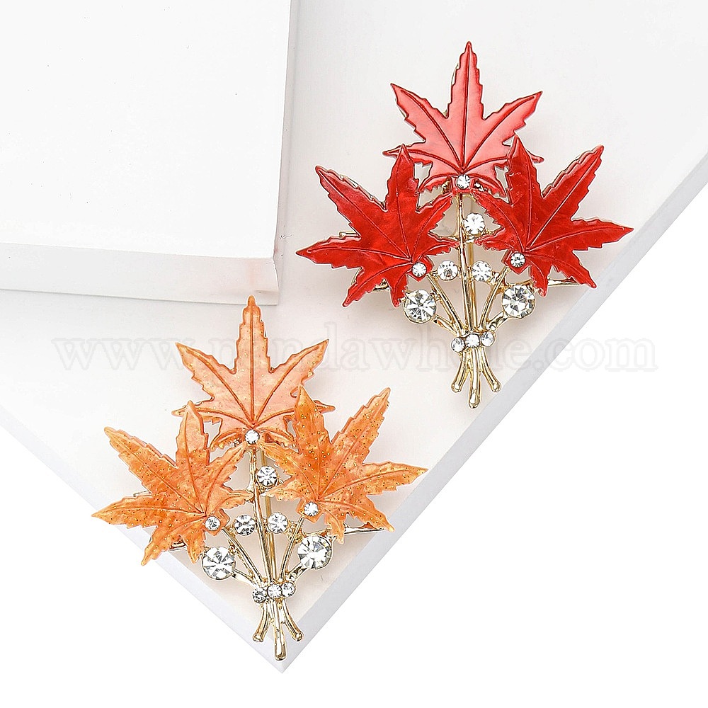 Модная акриловая трехцветная брошь в виде кленового листа, Брошь из сплава со стразами для универсальной женской одежды высокого класса, золотой свет