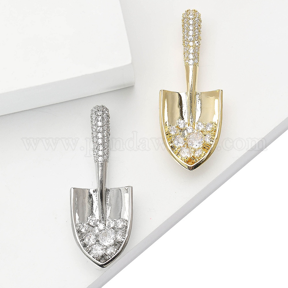 Брошь-лопатка из латуни с прозрачным кубическим цирконием