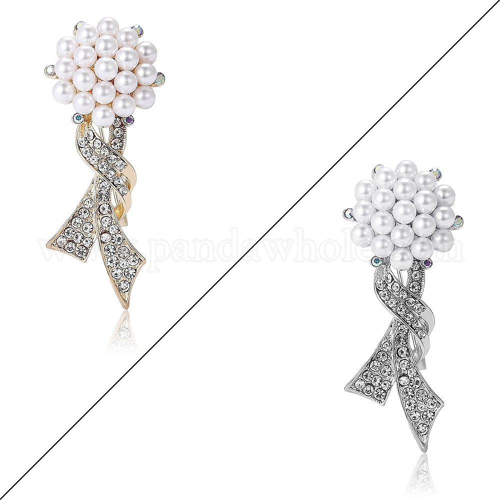 Брошь из цветочной ленты со стразами и кристаллами, с имитацией жемчуга