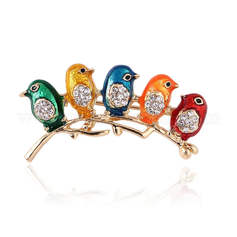5 птицы на ветках, эмалевые булавки с кристаллами и стразами, для рюкзака для одежды
