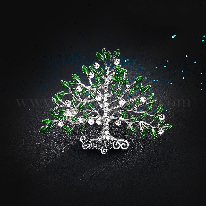 Зеленая эмаль древа жизни, броши из сплава со стразами в виде деревьев для рюкзака