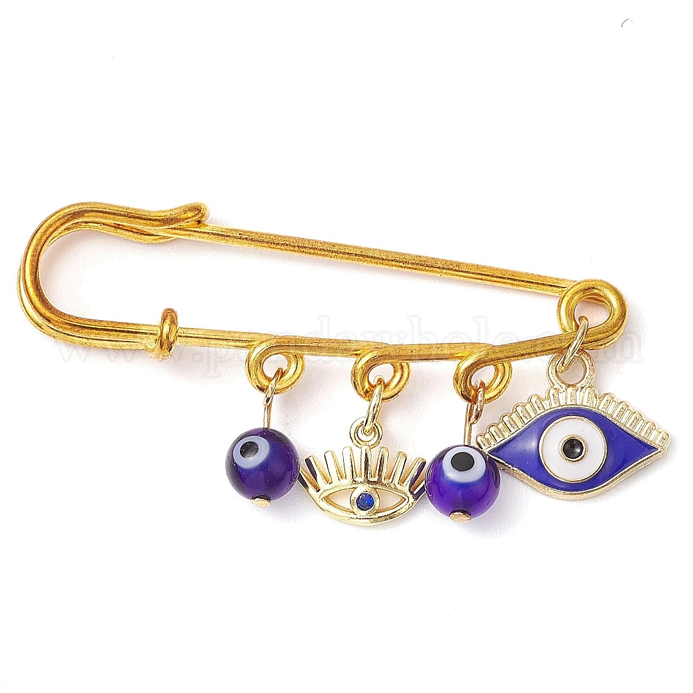 • Золотой Синий сглаз смола и сплав эмаль глаз амулет килт булавки, железная защитная брошь, золотые, 26x55.5x5.5 мм