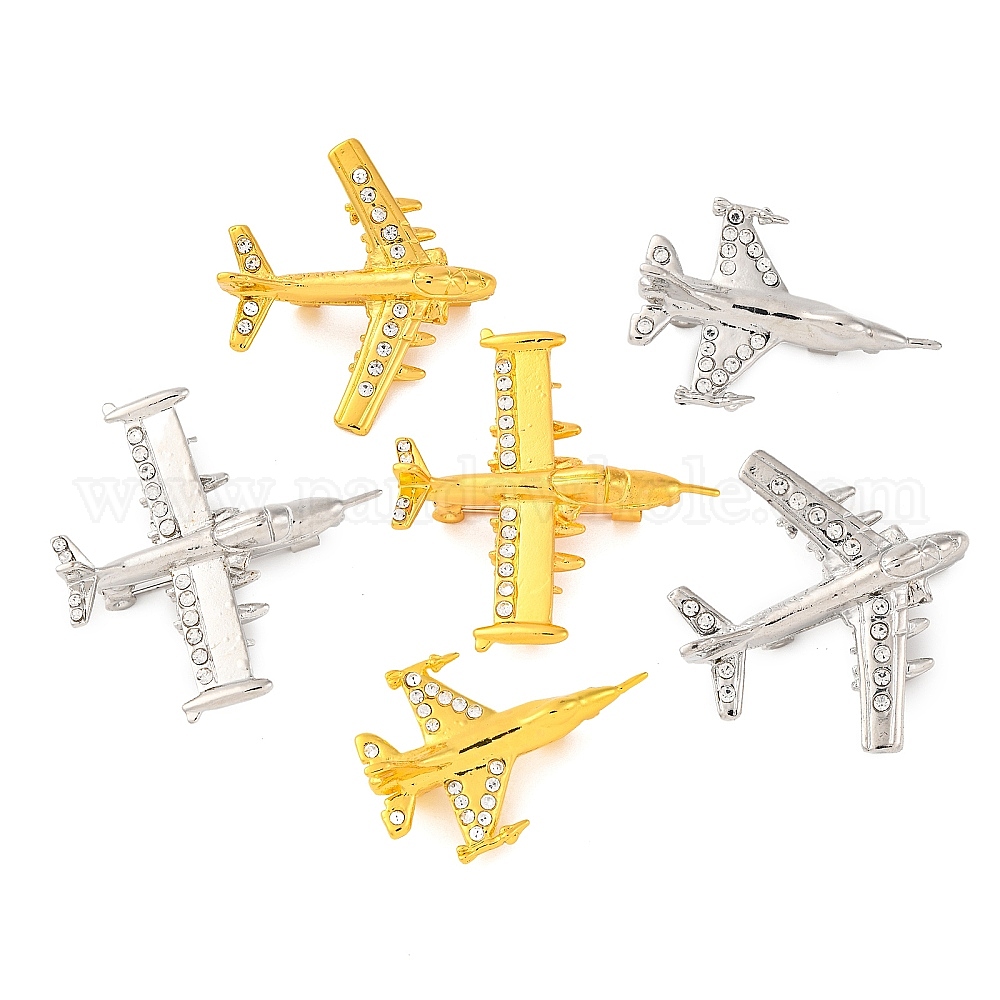 Брошь из цинкового сплава с кристаллами и стразами, самолет
