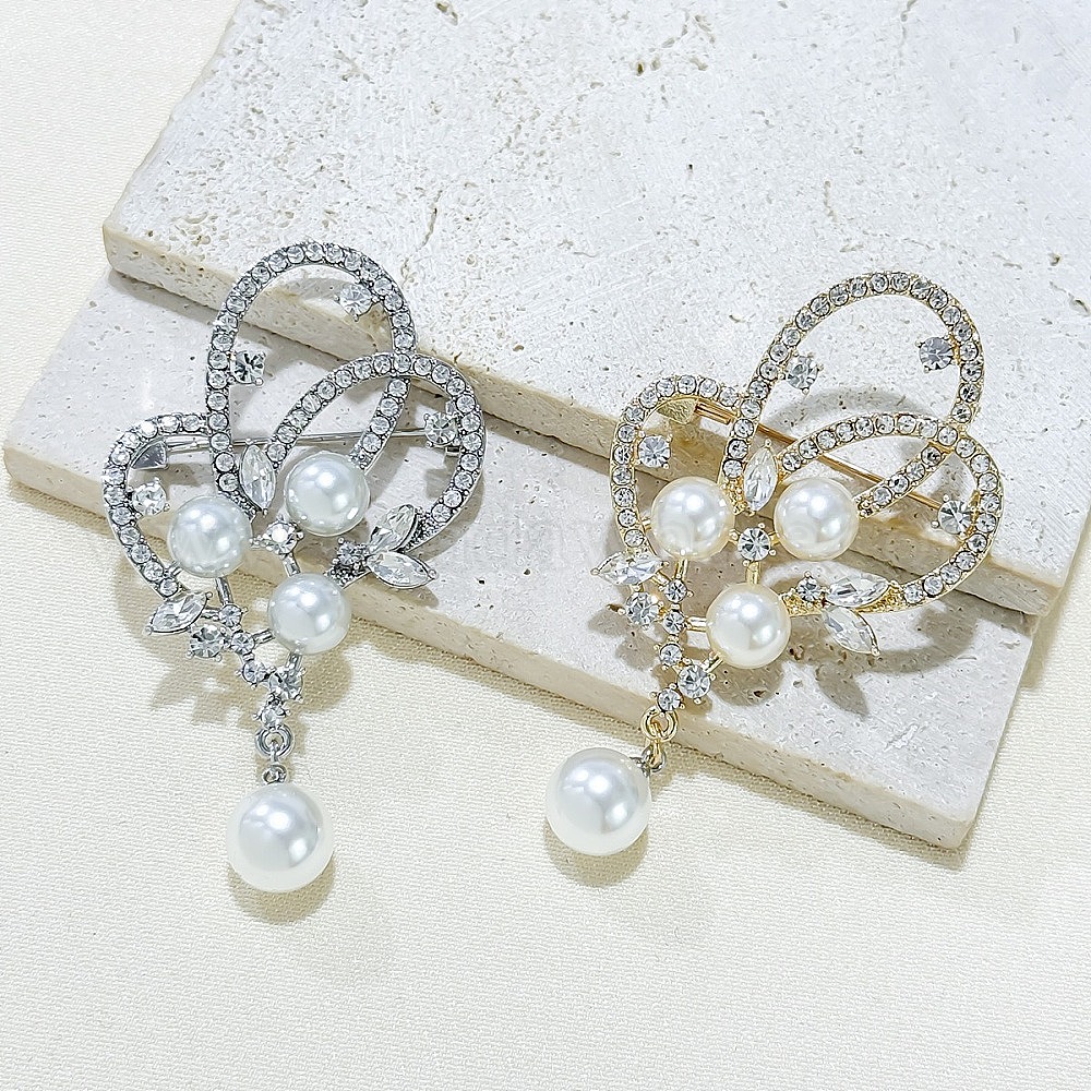 Броши из цветочного сплава со стразами, с круглой пластиковой жемчужиной, для рюкзака с одеждой