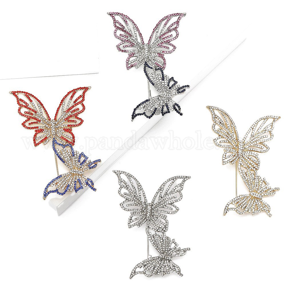 • Кристалл Двойная бабочка платиновый сплав броши со стразами для рюкзака одежды, кристалл, 65x47 мм