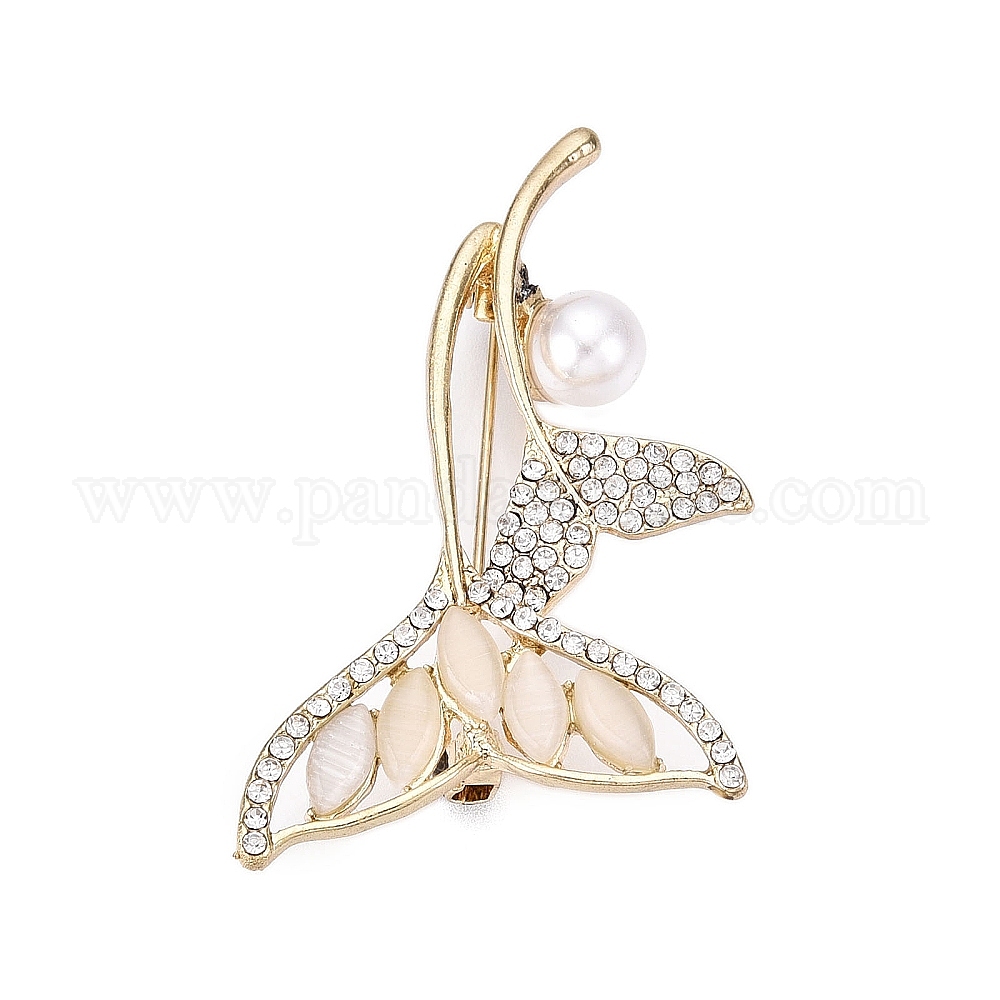 Брошь-булавка в виде хвоста кита из сплава со стразами и стеклом с жемчужиной ABS для рюкзака для одежды