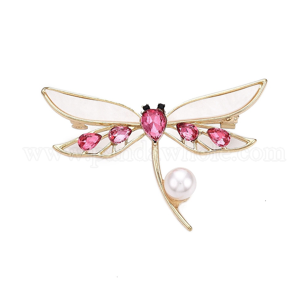 Брошь-булавка в виде стрекозы из сплава розового цвета со стразами и акриловым жемчугом из АБС для рюкзака и одежды