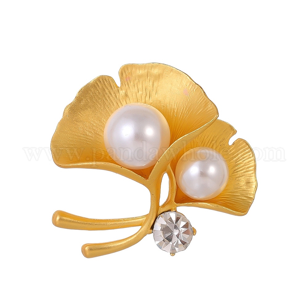 Броши из цинкового сплава со стразами в виде листьев, с пластиковой имитационной жемчужиной
