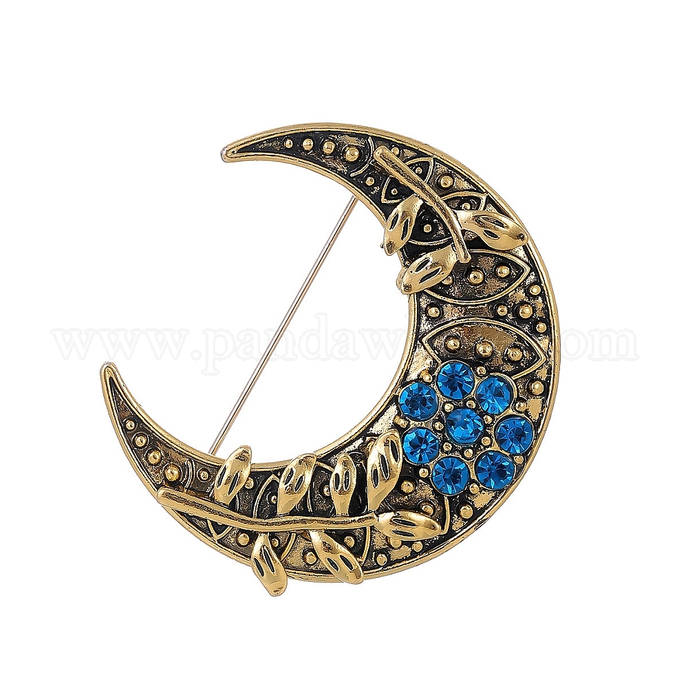 • Античное Золото Броши из цинкового сплава со стразами в виде луны, античное золото , 47x47 мм