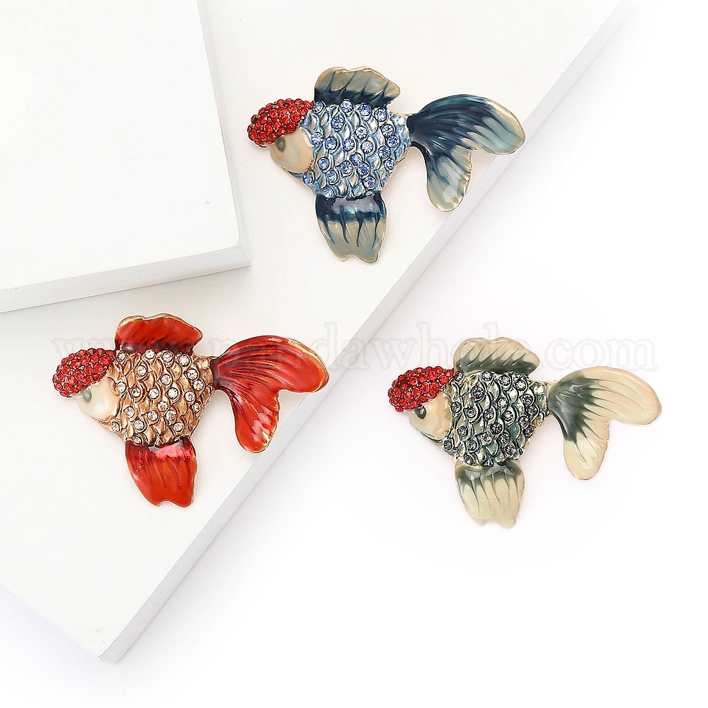 Эмалевые булавки в виде золотой рыбки, Броши из сплава со стразами для рюкзака