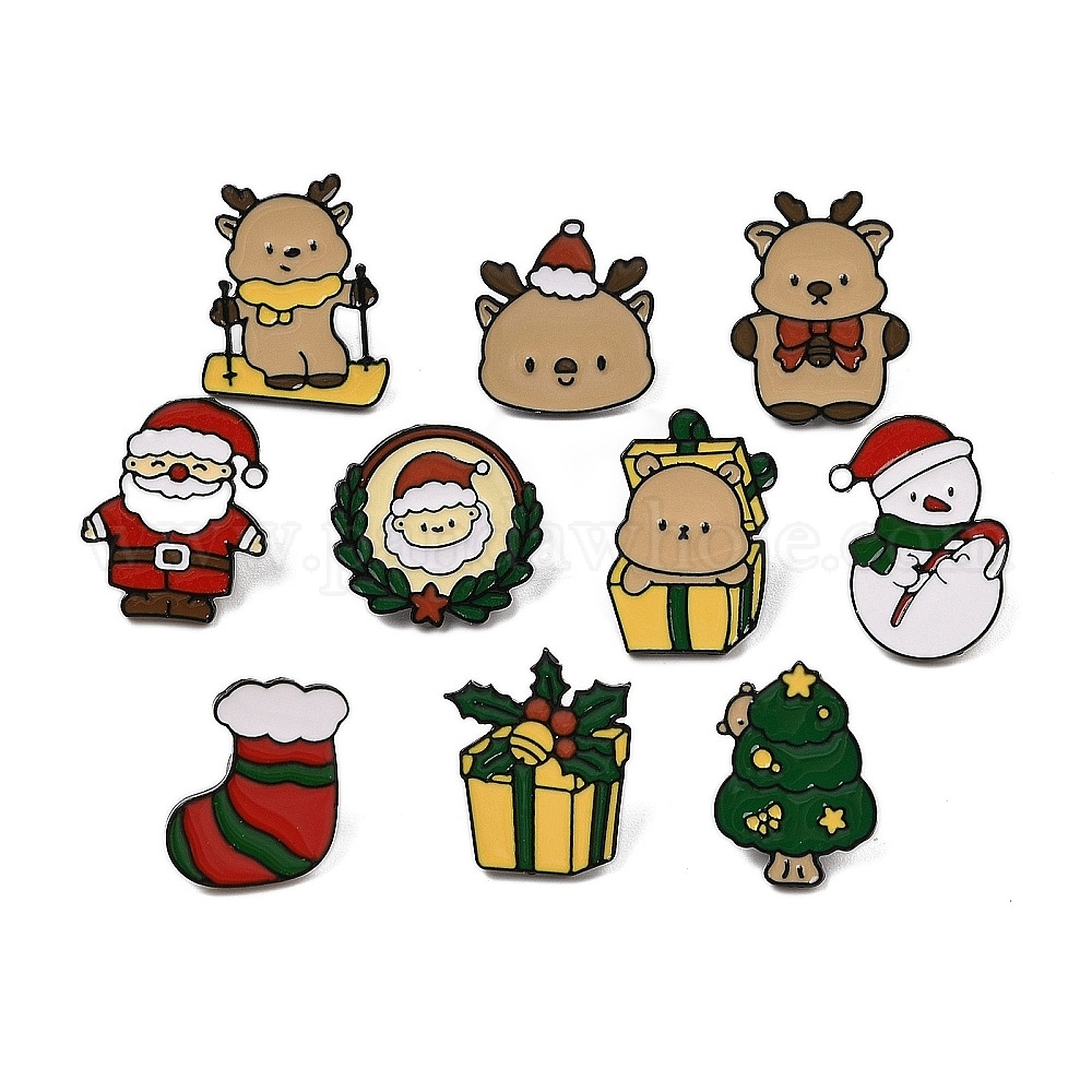 Рождественская тема цинковый сплав эмалированная брошь-булавка для рюкзака одежда, Санта-Клаус/снеговик/рождественский носок/коробка/елка/олень