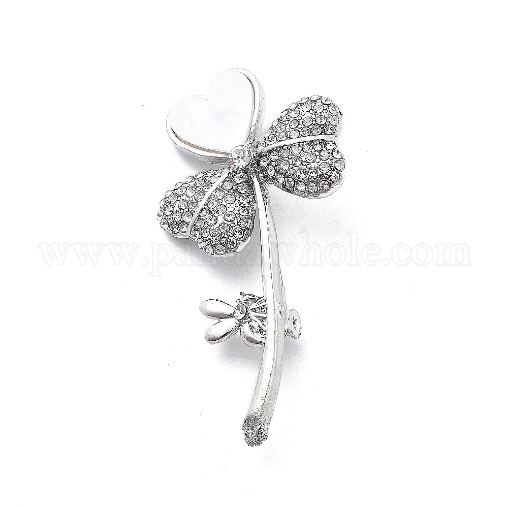 Броши в форме цветка в форме сердца из сплава со стразами, с белым акрилом (02YG3R)