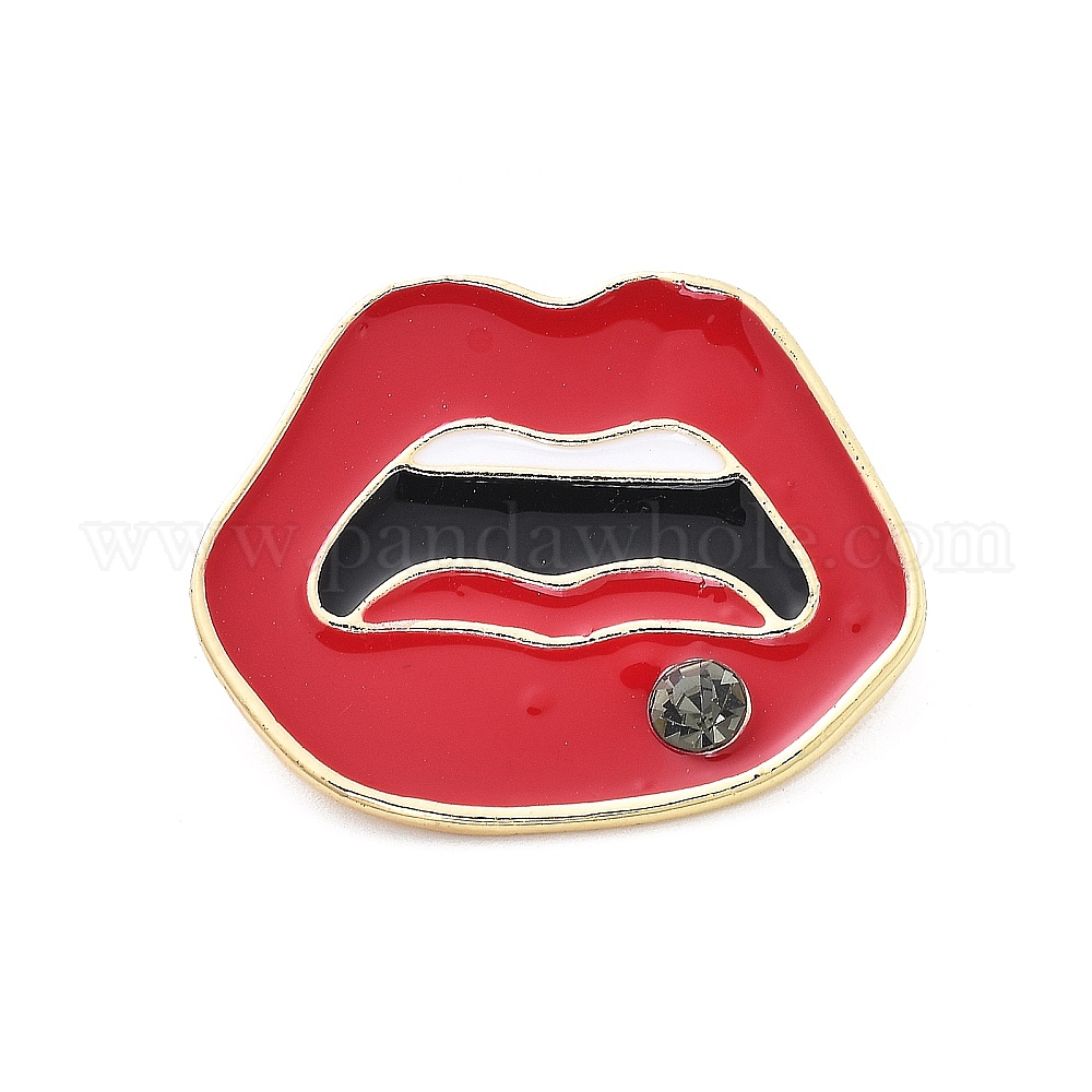 Броши-булавки из сплава красной губной помады с эмалью, со стразами