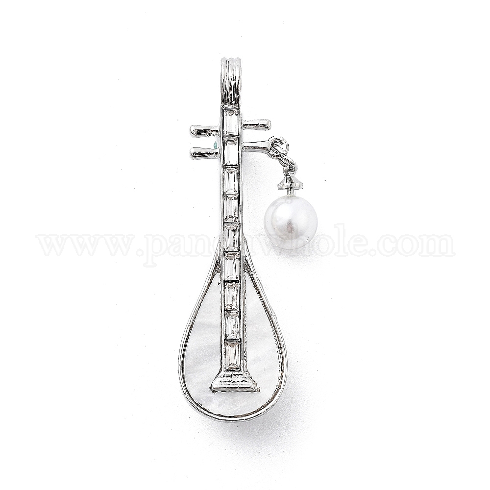 Сплава брошь, со стразами, искусственный жемчуг из акрила и АБС, пипа