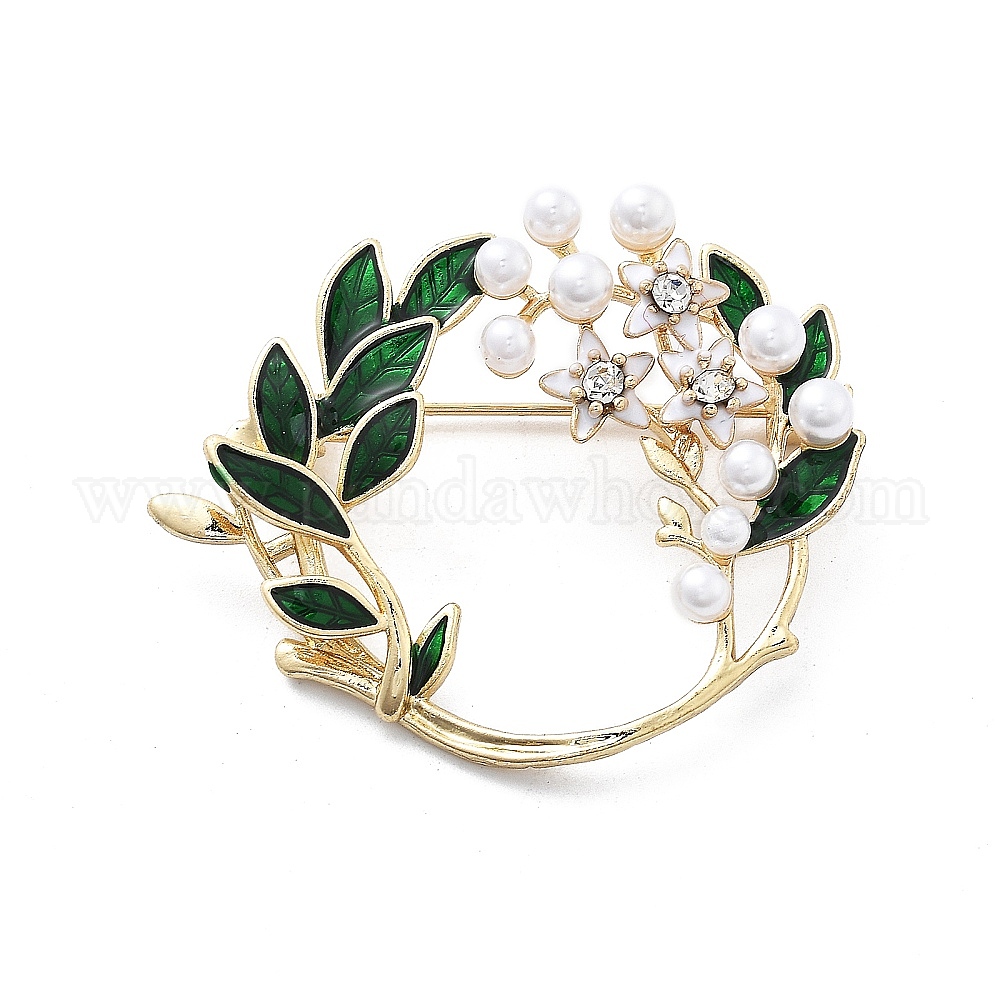 • Золотой Сплав эмали броши, с горный хрусталь и имитация жемчуга абс, лист, золотые, 34.5x42 мм