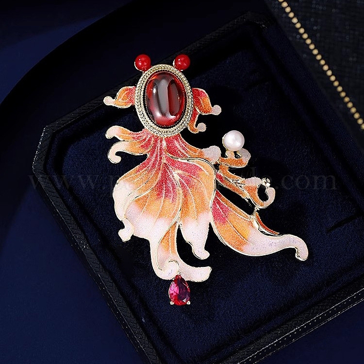 Эмалевые булавки в виде золотой рыбки, Броши из сплава со стразами для рюкзака
