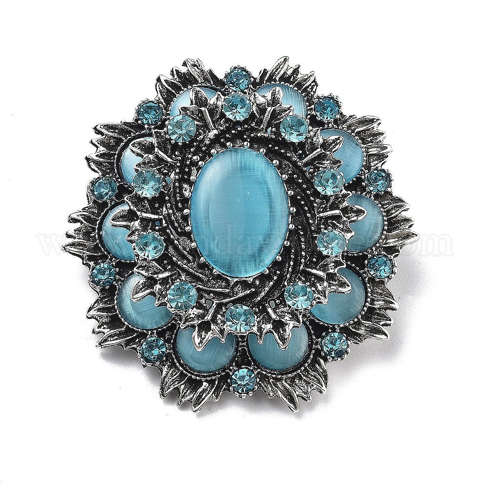 Броши в стиле барокко из сплава со стразами и кошачьим глазом